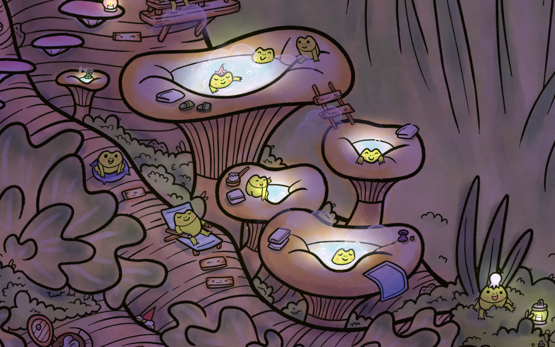 Our first game, Find My Frogs, marks the beginning of a long-term project: building the world of Moss Glade.